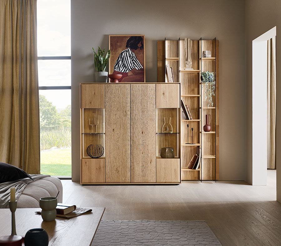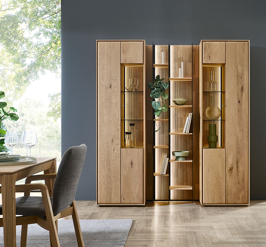 Als ganzheitliches Wohnraum-System bietet Ihnen Vala vom Sideboard über Standvitrinen bis hin zum Wandpaneel alles, was Sie sich für Ihre Wohn- und Speisebereiche wünschen könnten.